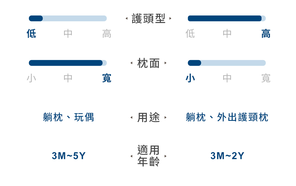 A2:可依照寶寶的實際頭頸部發展狀況決定。天使枕更能保護及貼合寶寶頭型,適合外出以及固定頭頸需求使用;而小豬枕則較為平坦,具有較強安撫性質、適合日常使用。