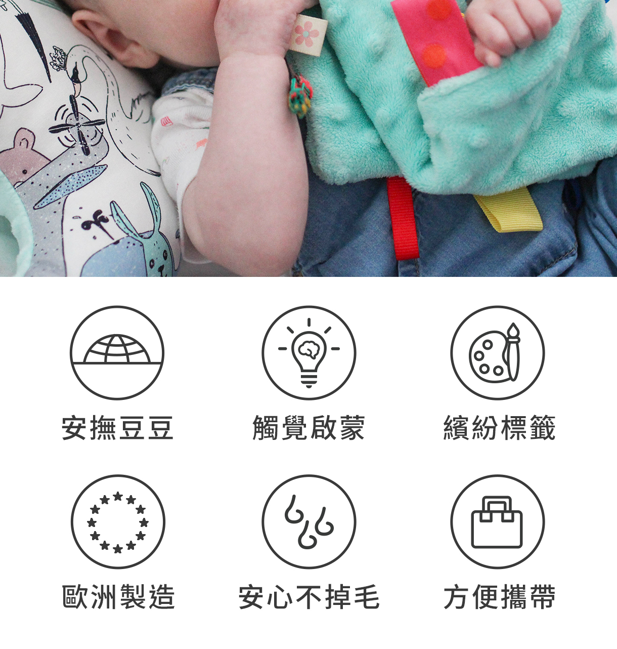 豆豆安撫巾★繽紛標籤&豆豆顆粒,立體觸感激發五官潛能