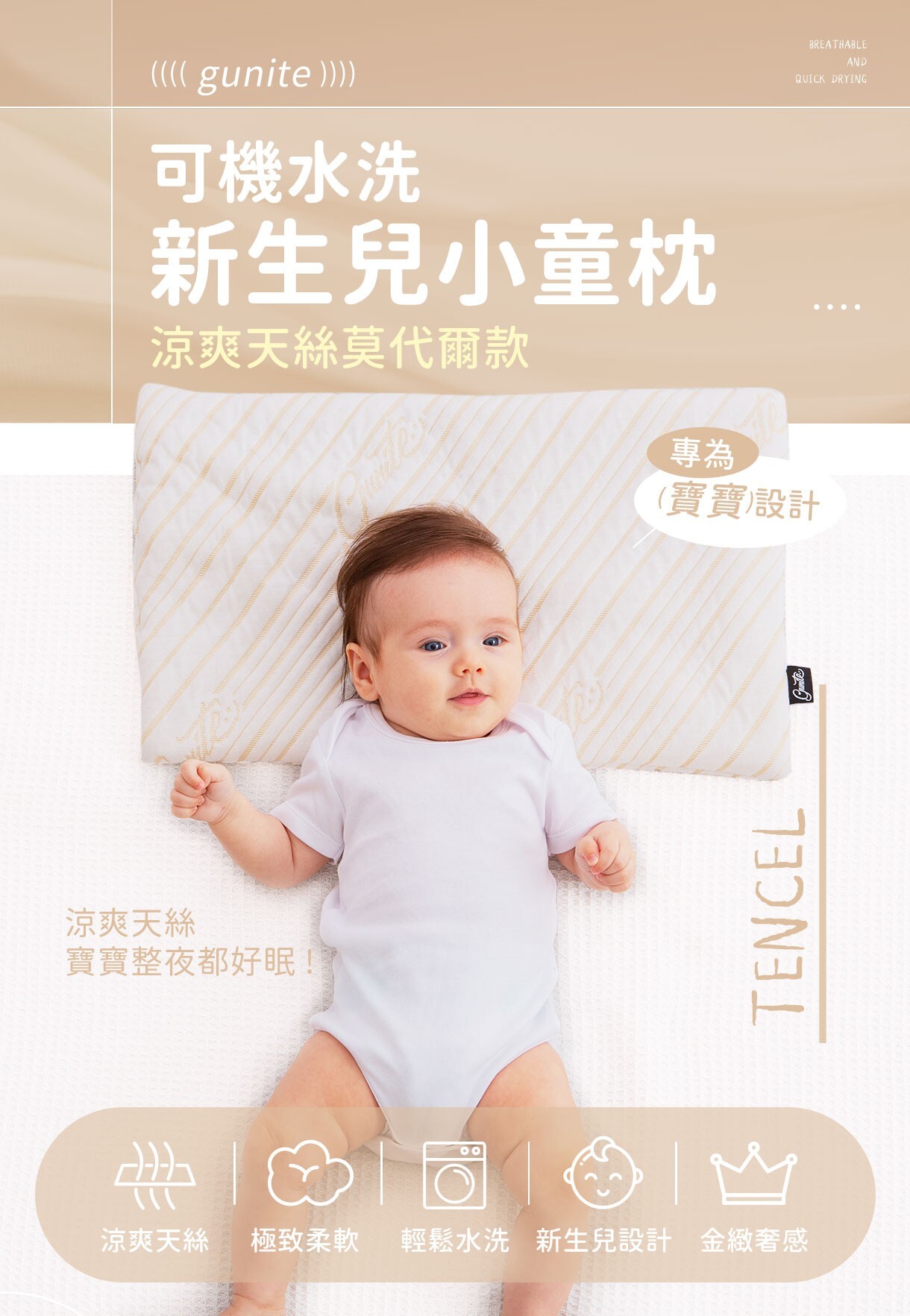品名:gunite 可機水洗新生兒小童枕_涼爽天絲莫代爾款