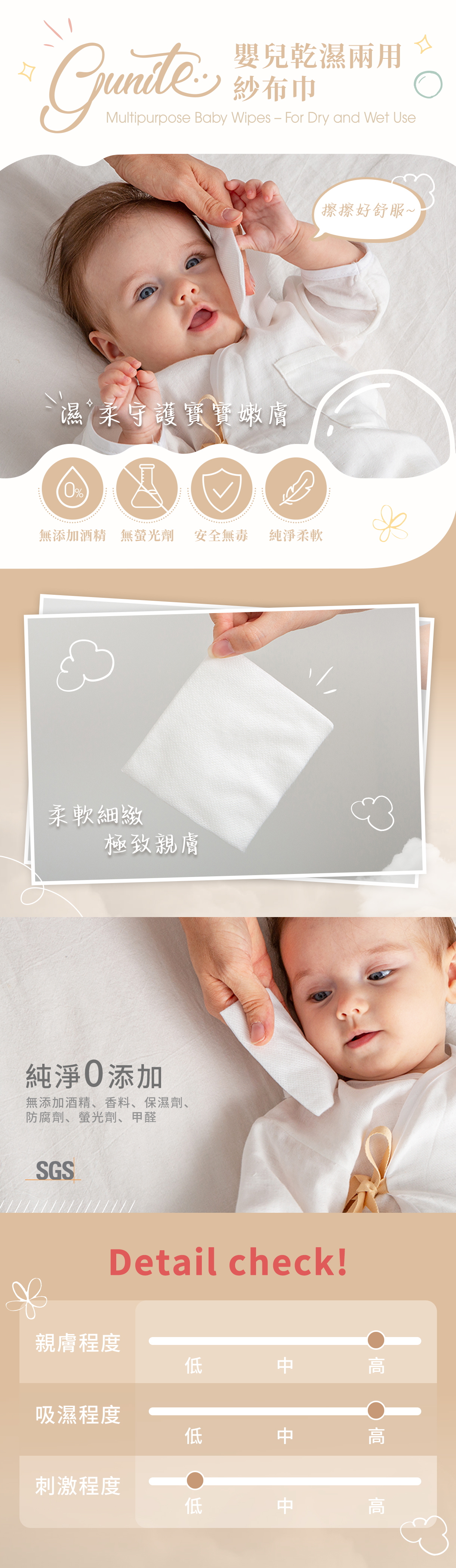 gunite 嬰兒乾濕兩用紗布巾|80抽|(不薄不厚剛好)