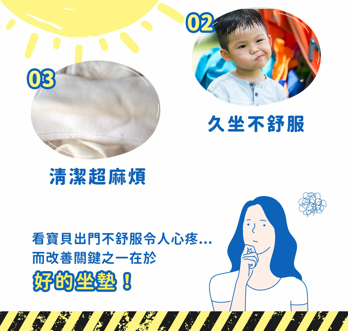 久坐不舒服:坐墊無支撐力,長時間容易不舒服且坐不久,嚴重影響寶寶脊椎!