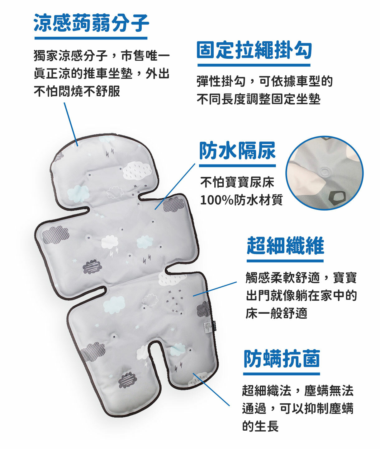 就選擇lolbaby涼感蒟蒻推車坐墊,涼爽、舒服、好清洗的嬰兒車坐墊,一次輕鬆解決以上三大育兒煩惱!