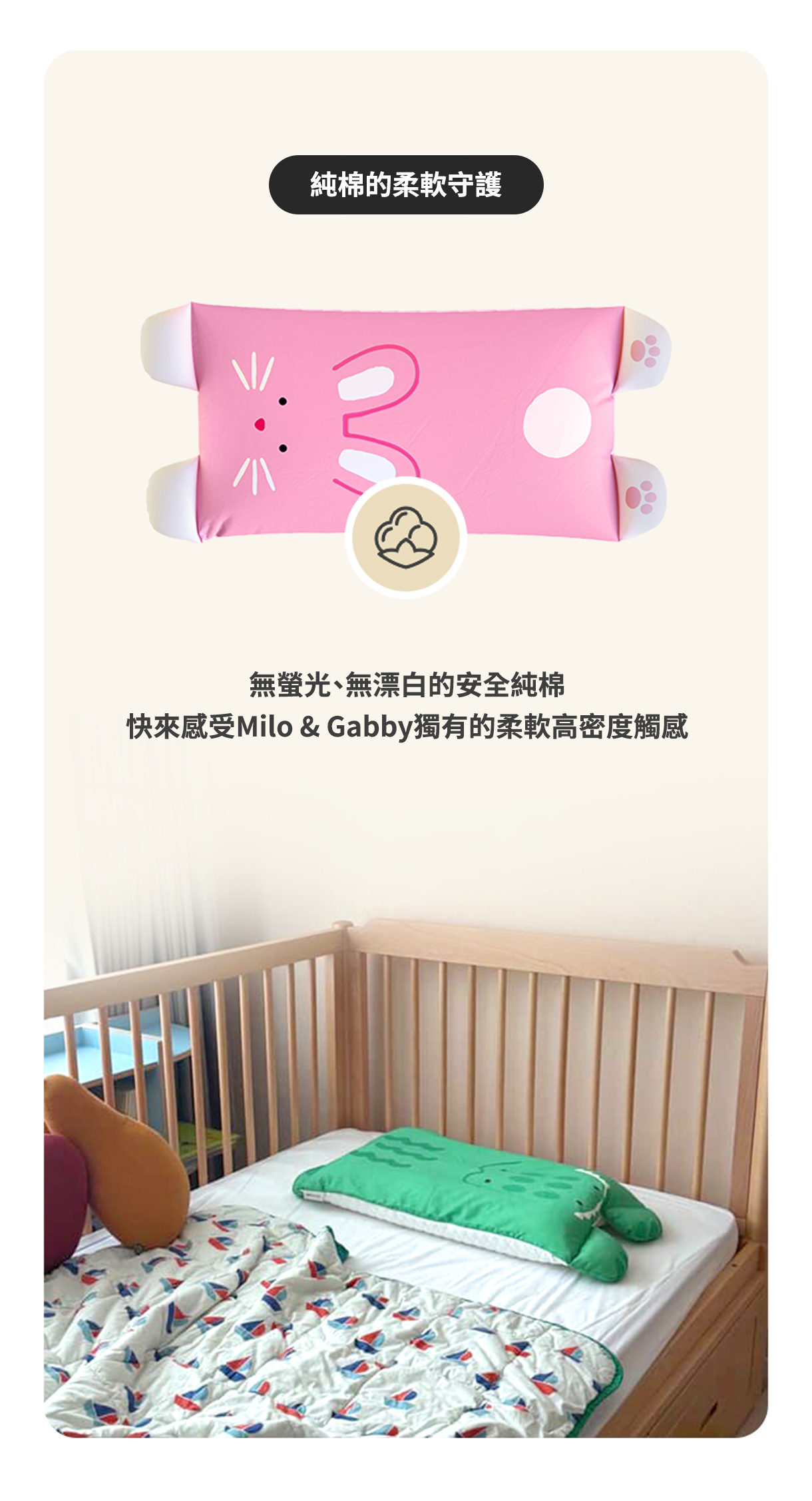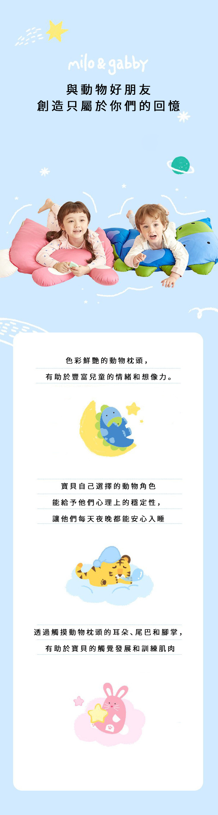 可愛的動物好朋友陪伴入睡,帶給孩子滿滿安全感,