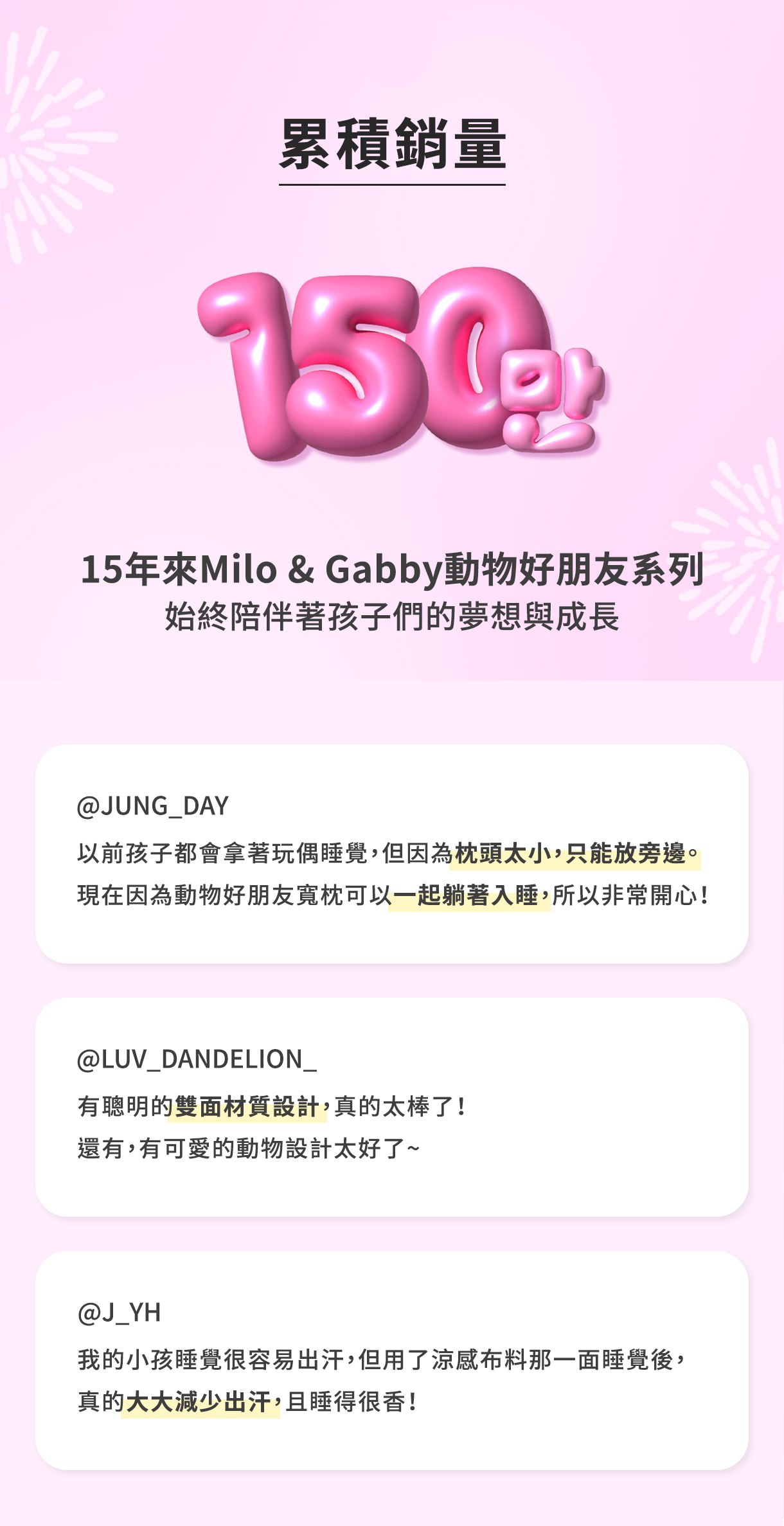 •為維持最佳使用狀態,建議 定期更換枕心。