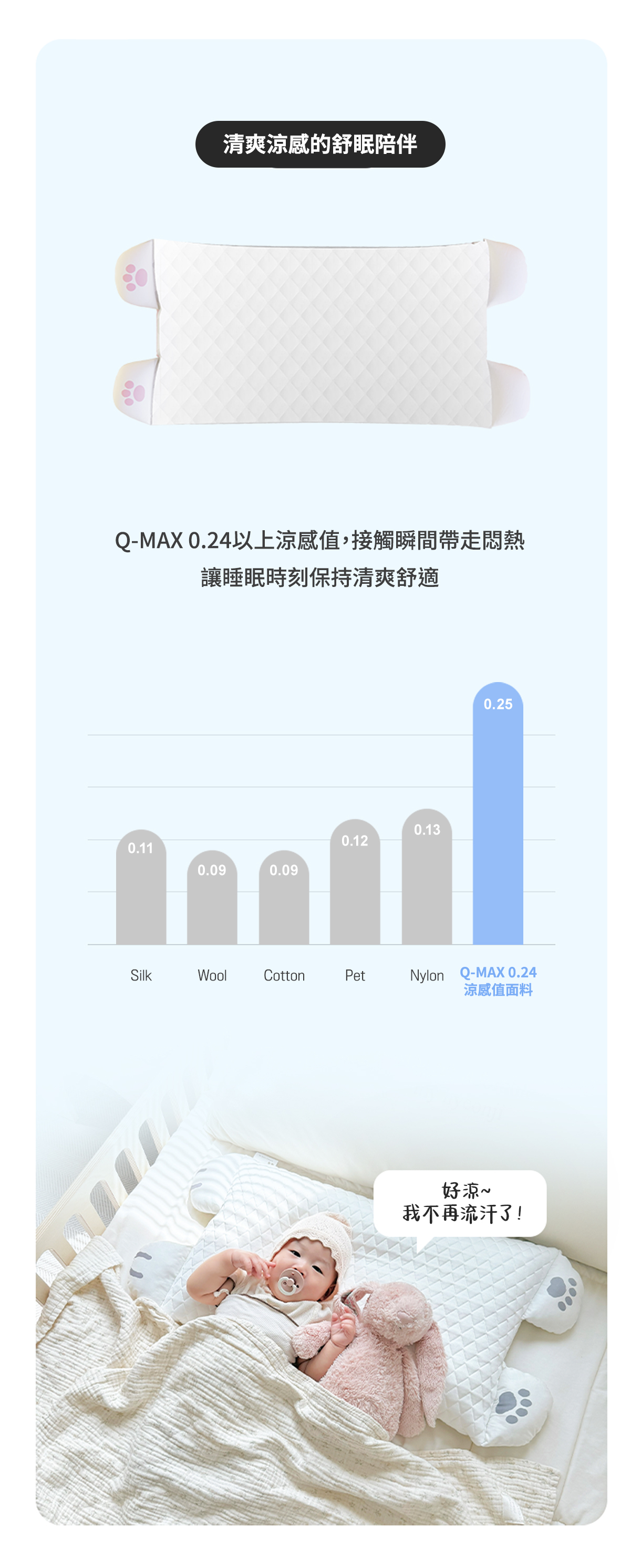 ★ Q-MAX 0.24 高效涼感布料,持續清爽不悶熱