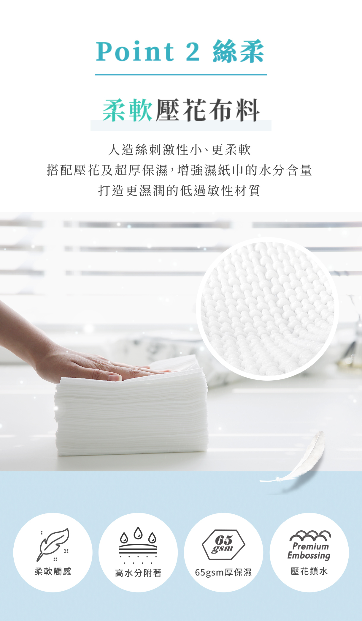 ★ 柔軟絲柔,壓花鎖水+65gsm厚保濕