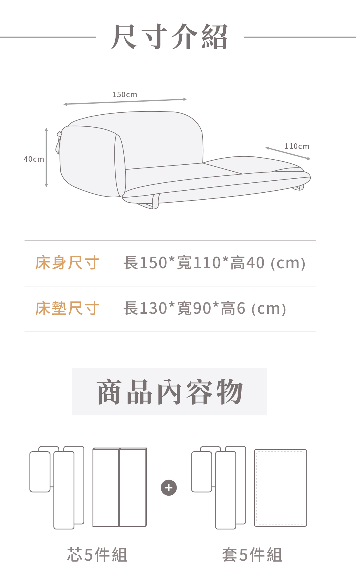 床圍內芯:(外層)100%純棉、(內裡)EPE泡棉+Polyester