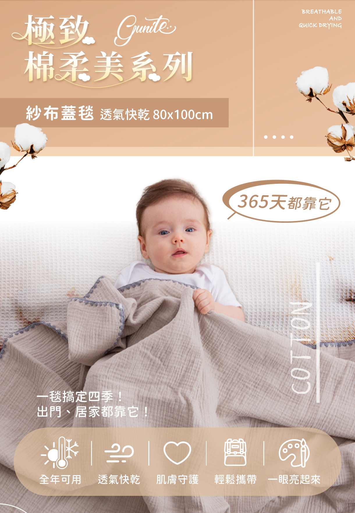 品名:gunite 極緻棉柔美系列-紗布蓋毯 | 透氣快乾