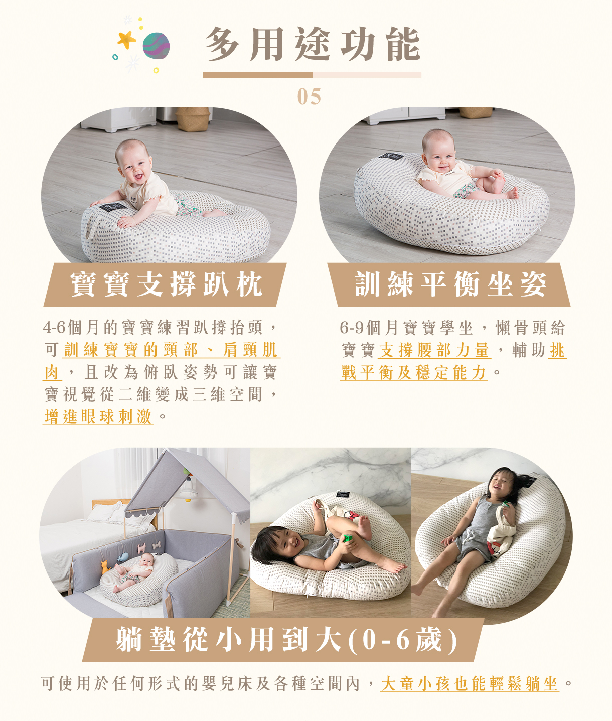 ★ 0-6歲皆可使用,躺椅趴枕多用途