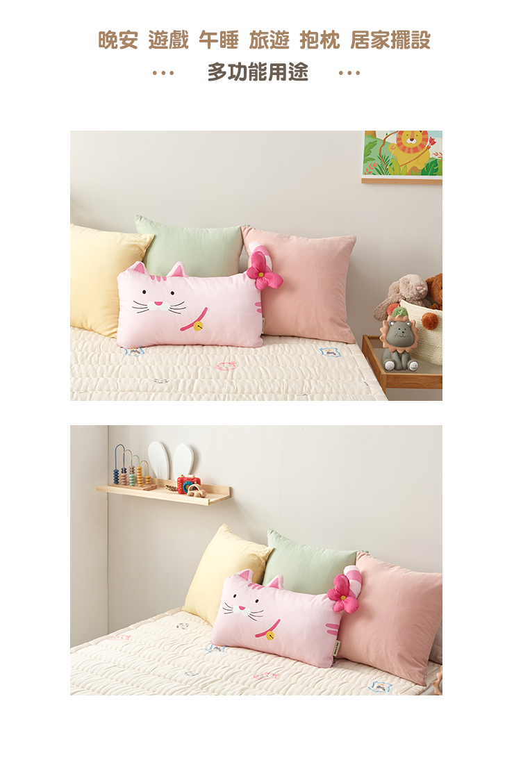 枕套:60 x 40cm(+/- 3cm) (依不同動物造型,尺寸略有不同)