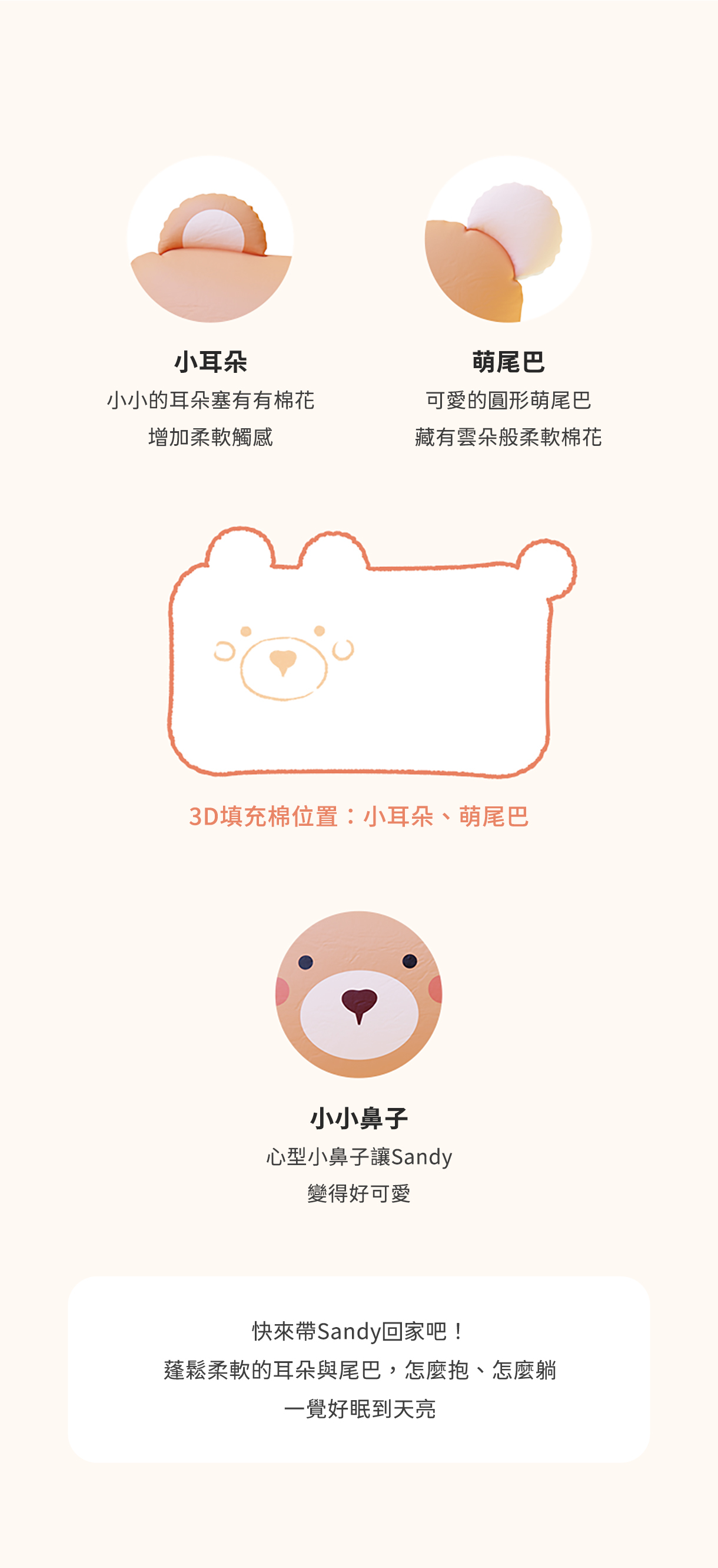 枕套:60 x 40cm(+/- 3cm) (依不同動物造型,尺寸略有不同)