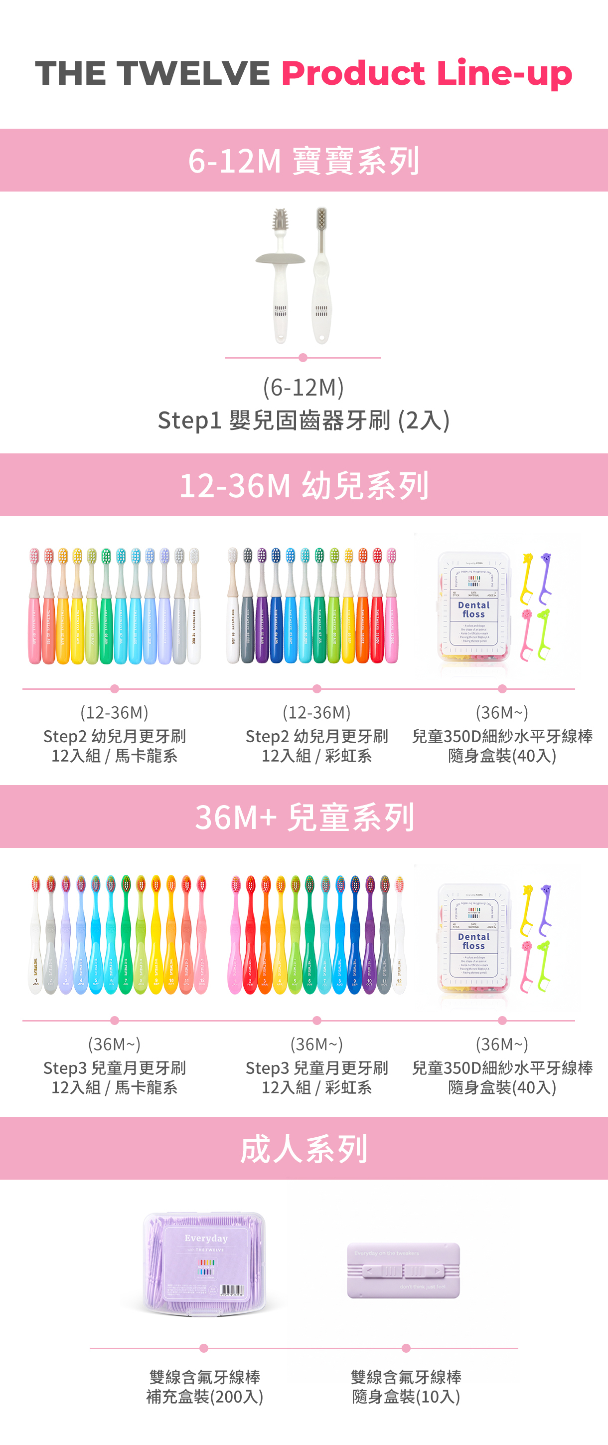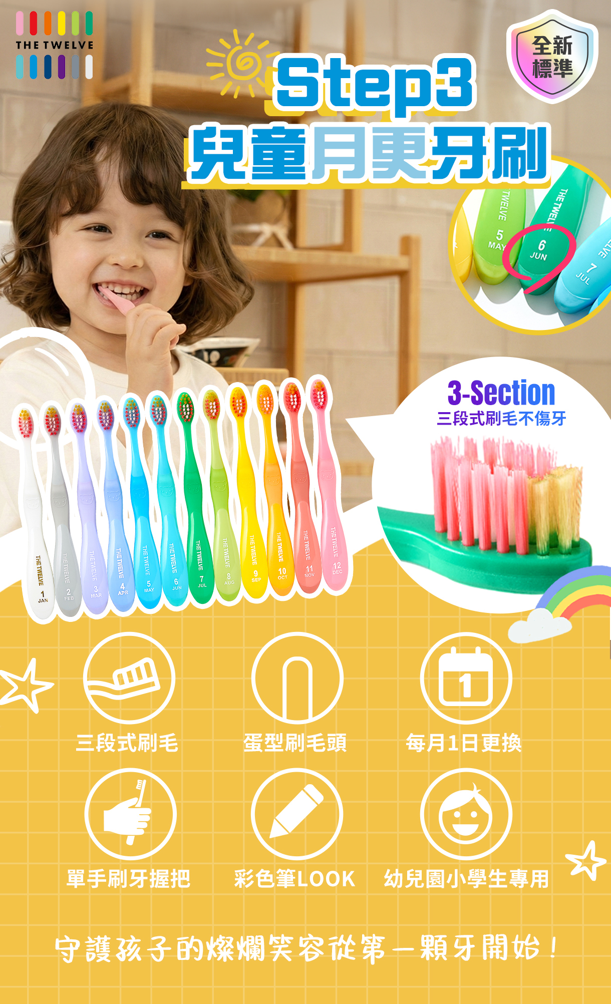 The Twelve 兒童月更牙刷,每個月份都有專屬顏色的設計,就像繽紛的彩虹,更如同孩子最愛的彩色筆。