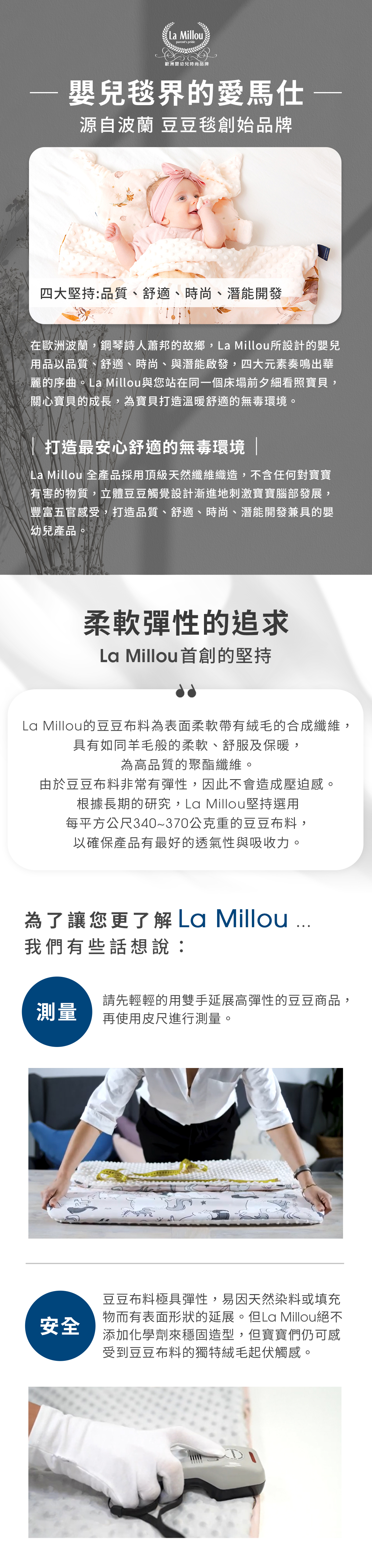La Millou自2010年創立至今,已連續獲得國內外多項獎項,包括知名的Institute of Mother and Child、The Mam Dzieco Super product Award、mombaby媽媽寶寶,好評蟬連十年,重視美感、設計感、觸感的媽咪,寶貝們絕不容錯過。